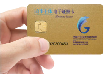 商事主体电子证照卡,是以营业执照信息为基础,集合企业其他登记、许可、备案、资质认证等证照基础信息的可读写标准电子介质。商事主体电子证照卡业经国家密码管理局认证,是可作为数字证书使用的“企业电子身份证”。商事主体可持卡在横琴片区工商、税务、质监、海关、检验检疫等部门办理审批、许可、备案等业务;相关签约银行等金融机构通过审查电子证照卡,可快速审核企业身份,为企业办理相关金融服务业务。截至10月20日,商事主体电子证照卡已发放330多张。