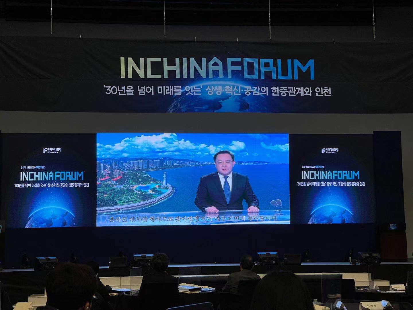 12月8日,由中国驻韩国大使馆与韩国仁川市共同主办的“仁中论坛”2021国际会议以线上线下结合方式成功举行。中国驻韩国大使邢海明、仁川市长朴南春等中韩两国各界人士出席活动。市委副书记、市长闫剑波视频致辞。