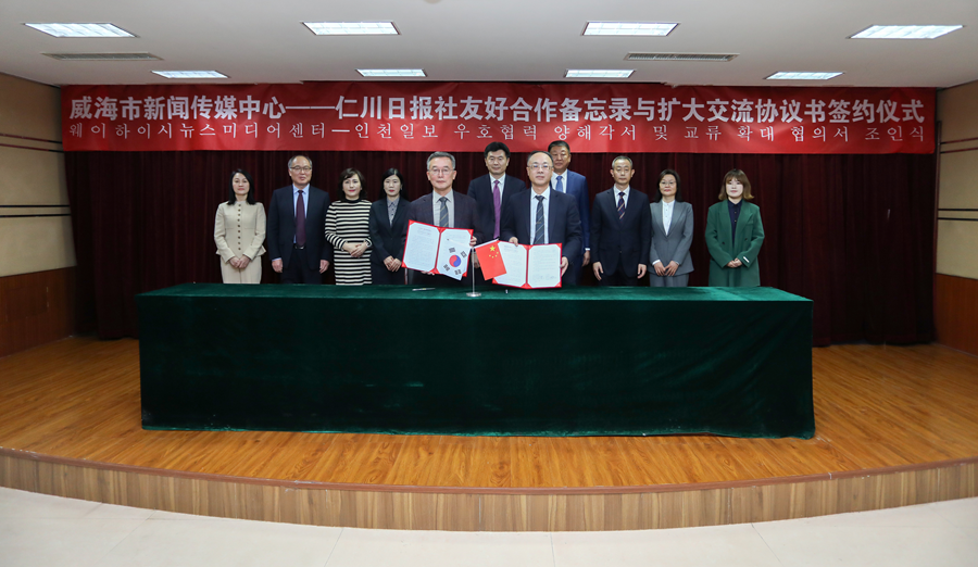 2月13日,威海市新闻传媒中心与韩国仁川日报社签署友好合作备忘录与扩大交流协议书。双方将立足原有合作基础,进一步拓展交流领域、创新合作机制,在互助协作、新闻资源互通、文化交流传播、拓展媒体合作等领域开展务实合作,共同提升媒体品牌影响力和竞争力,努力打造中韩地方媒体合作交流的典范。