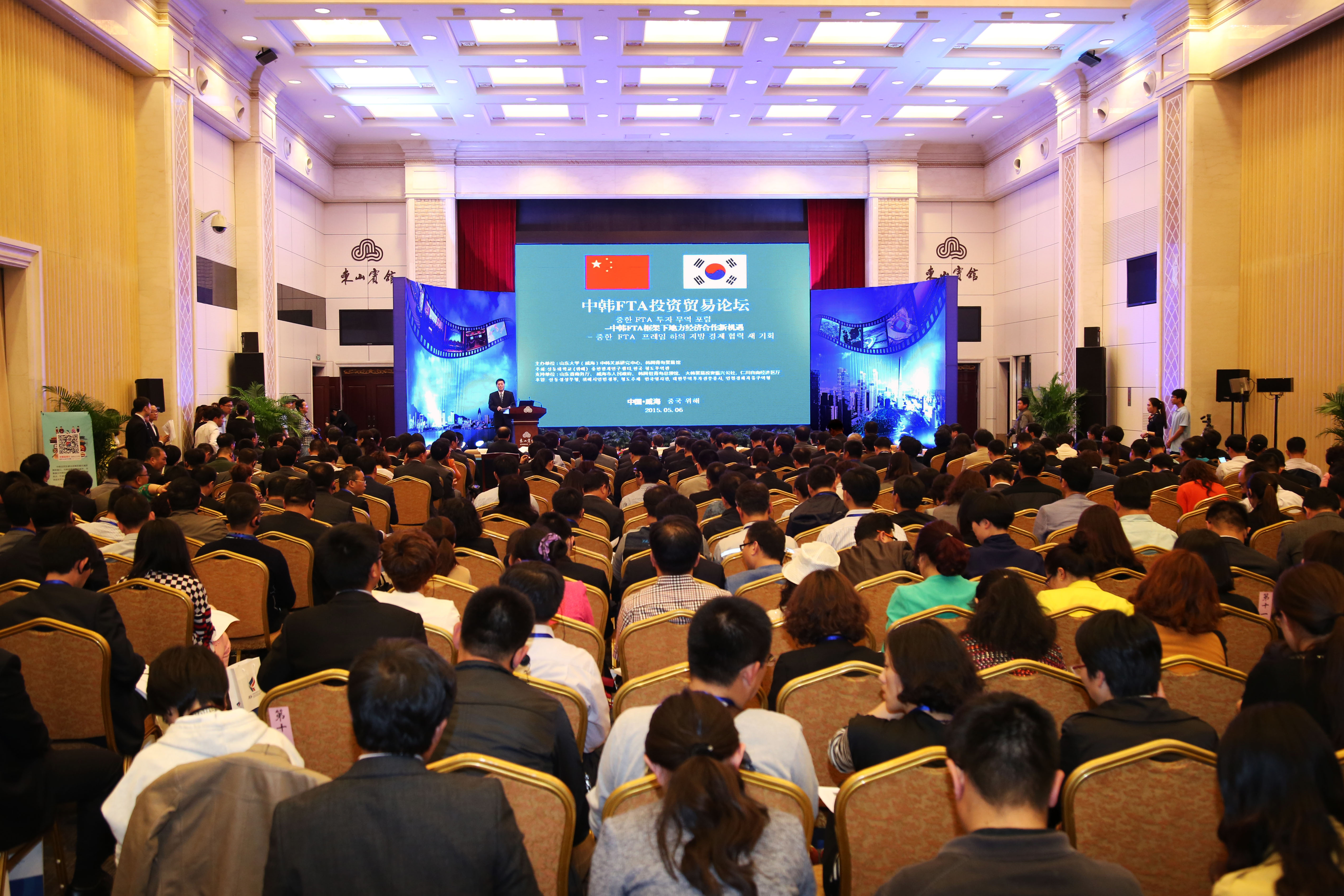 5月6日,中韩FTA投资贸易论坛在山东威海举办,来自中韩两国的政府官员、研究机构、协会组织和企业代表310余人参加了论坛。威海市市长张惠、韩国驻青岛总领馆总领事李寿尊、山东省商务厅总会计师孙敢敏、仁川自由经济区厅副厅长赵东岩、大韩贸易投资振兴公社副社长尹元锡先后致辞,副市长刘广华主持论坛。威海市商务局和仁川自由经济区厅开发企划总括课代表分别就两地投资环境和地方经济合作设想进行了专题推介。