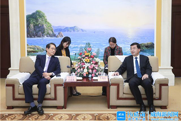 5月12日,威海市委书记张海波会见韩国驻青岛总领事馆总领事朴镇雄一行。市领导侯世超、高书良会见时在座。