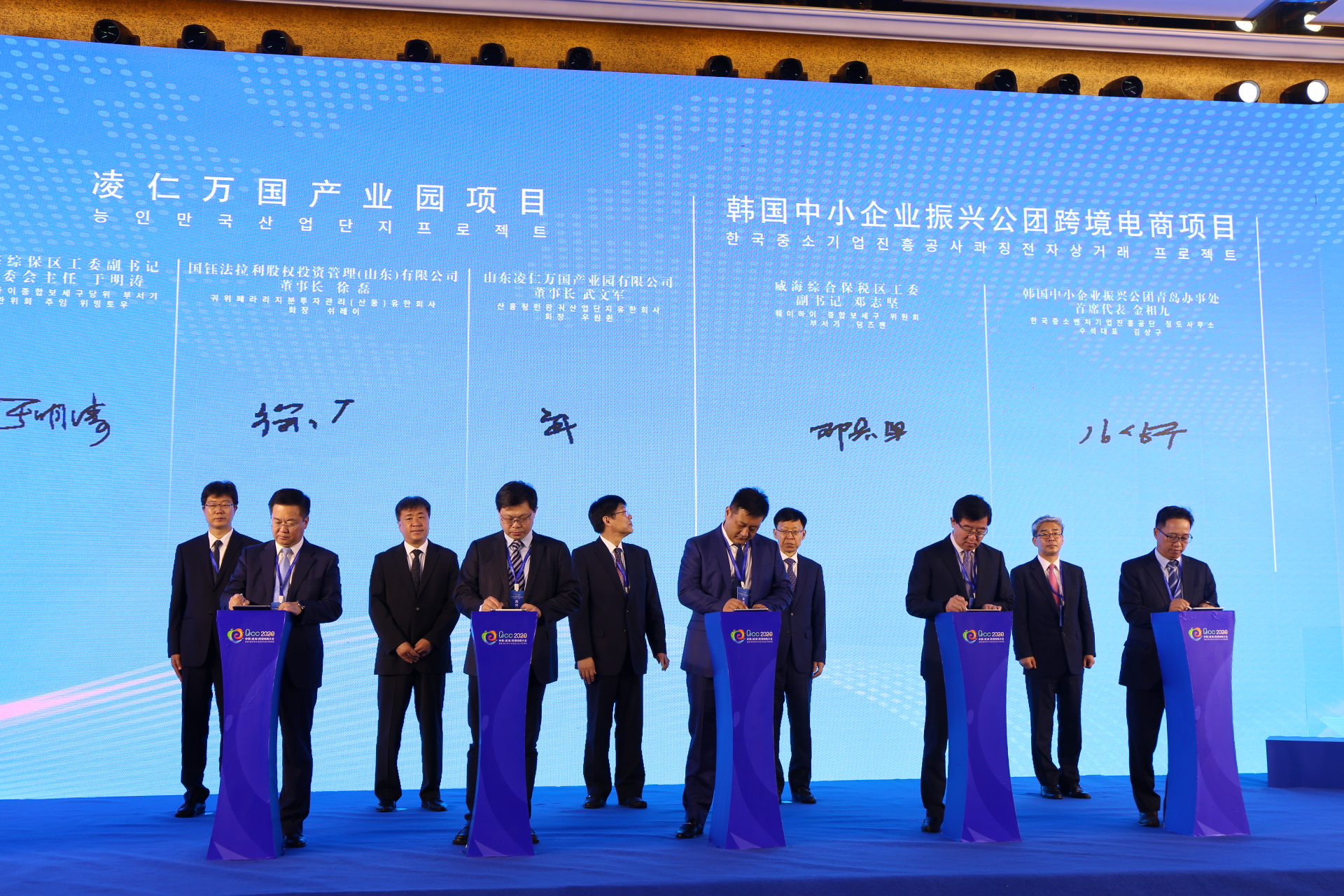 此外,凌仁万国产业园项目、韩国中小企业振兴公团跨境电商项目、韩国新罗免税店跨境电商项目、微观科技区块链项目、中通云仓跨境电商直邮保税备货项目、威海数字经济创新中心项目等六个项目在大会现场进行集中签约。六大项目总投资额超过20亿元。其中,冷链物流项目1个,跨境电商项目5个,预计将带动年进出口额超过40亿元。