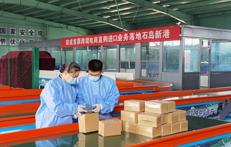 2月4日,在青岛海关所属荣成海关监管下,一批自韩国跨境电商直购进口的洗护用品、食品在荣成口岸通关入境,标志着荣成市开通跨境电商直购进口模式。